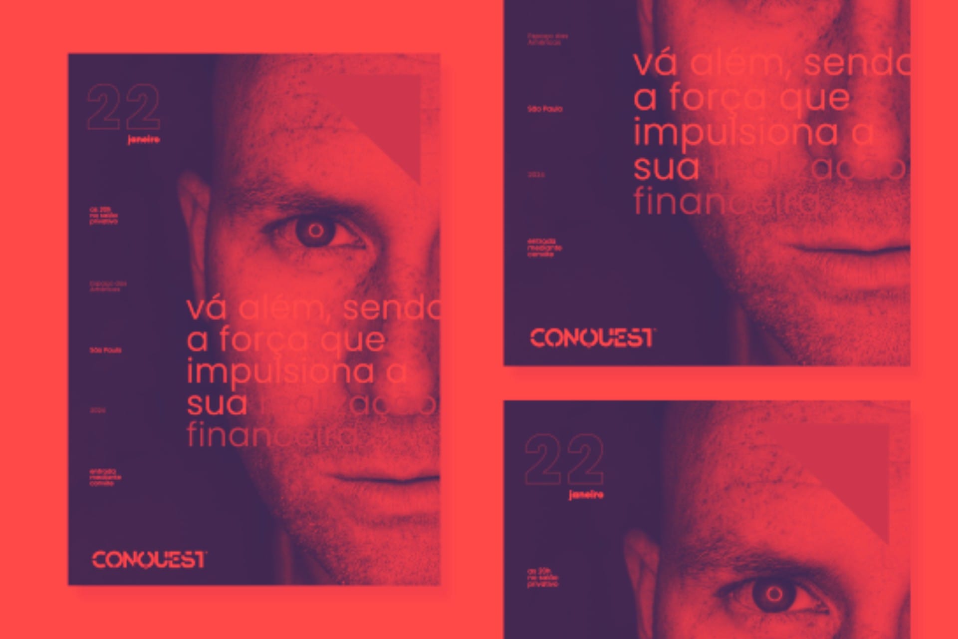 O Conquest é o principal evento interno do Grupo Capital, um grupo que prega e desenvolve a inteligência financeira entre seus clientes, por meio de métodos inovadores e sustentáveis. O desafio aqui envolveu o desenvolvimento de logo, identidade visual e demais materiais para o evento, contemplando os valores da marca e semeando a cultura da empresa entre seus colaboradores.