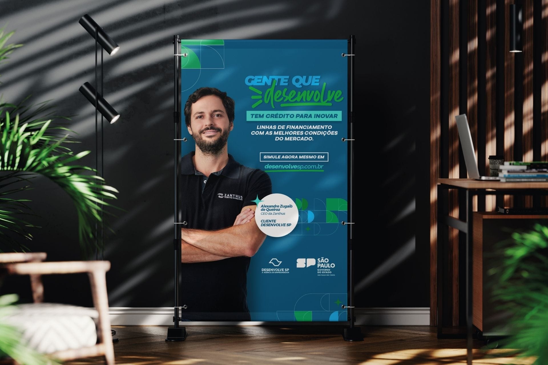 A comunicação foi estruturada em segmentos, mídia on-line, off-line, digital-produção, e ações internas, com presença nos principais canais do estado: de rádios no interior a DOOH no centro de São Paulo, passando por grandes portais, redes sociais e plataformas de busca. Paralelamente, o público interno foi mobilizado com ativações que transformaram colaboradores em embaixadores, reforçando a cultura da marca de dentro pra fora. Mas talvez o ponto mais simbólico tenha sido a imersão da equipe criativa e de produção em campo: viajamos por diferentes regiões do estado para registrar, em vídeo, histórias reais de empreendedores que desenvolvem SP com apoio da instituição. Conhecemos a inovação da Phelcom em São Carlos, a força da Ceaflor em Holambra, a tradição da gráfica InMarka em Campinas, a doçura da Bolo Lá Dcasa em Ourinhos, a energia da LPZiglio na mesma cidade e a conexão urbana da Zanthus em São Paulo. Essas narrativas ancoram o discurso da campanha em pessoas reais, em sotaques, territórios e soluções que tornam a Desenvolve SP um vetor de futuro para todo o estado.